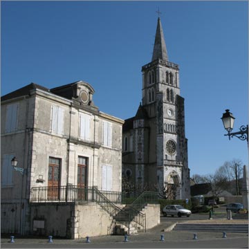 La mairie et l'église de l'Assomption-de-Notre-Dame - Bénéjacq - 5 mars 2008