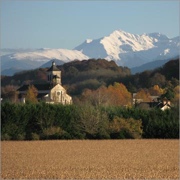 L'église Saint-Vincent-Diacre et le Pic du Midi - Coarraze - 15 novembre 2008